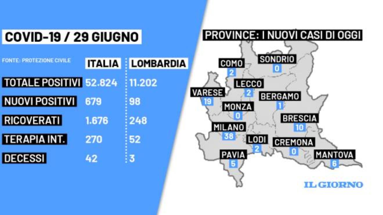 Bollettino Covid Italia E Lombardia I Dati Di Oggi 29 Giugno 679 Nuovi Casi E 42 Decessi Cronaca
