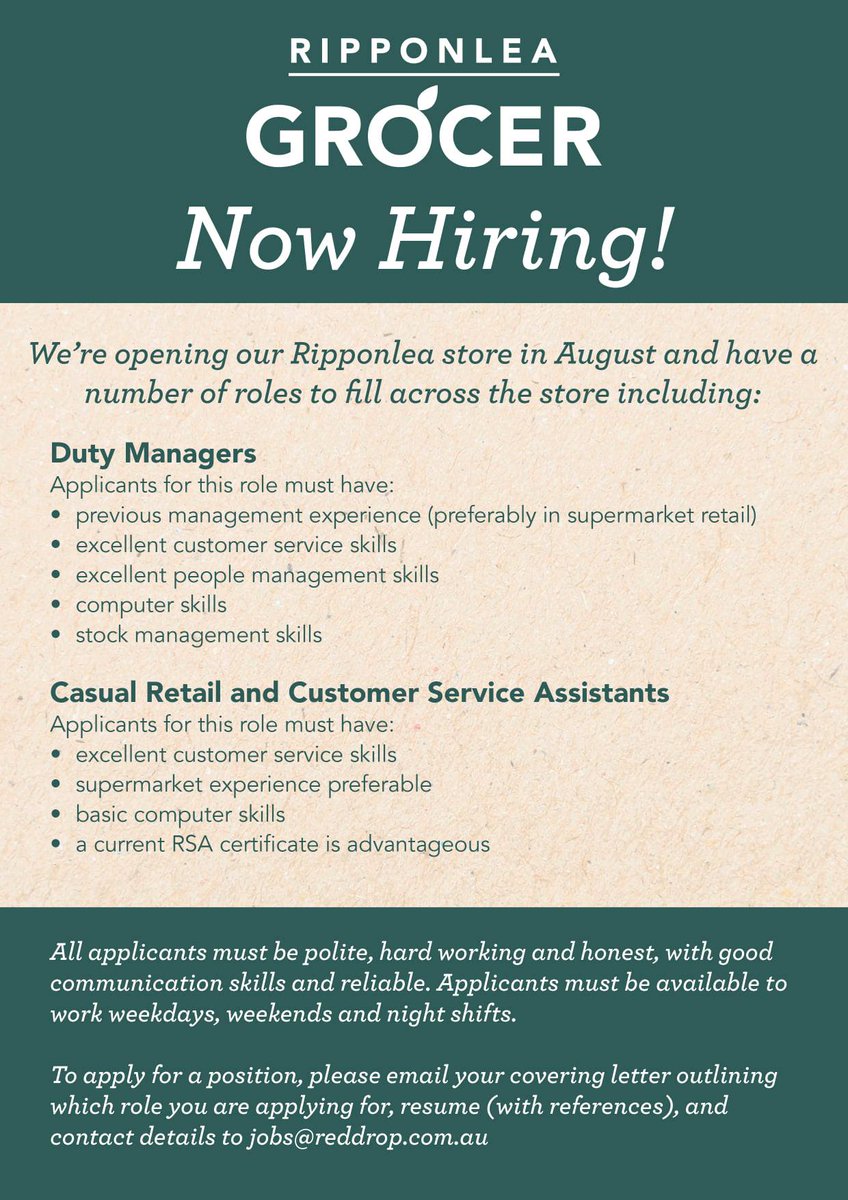 Our new sister store Ripponlea Grocer is coming soon. Your email Not for publication. To apply for a position please email your covering letter resume with.