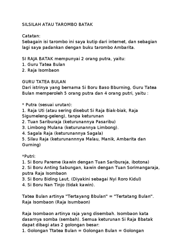 Silsilah Atau Tarombo Batak Pdf